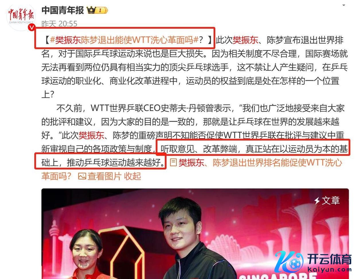 刚发表声明书记退出WTT寰球名次,紧接着陈梦也跟风,随后国表里指令员纷繁示意声援,总共乒乓球界仿佛被引爆了。