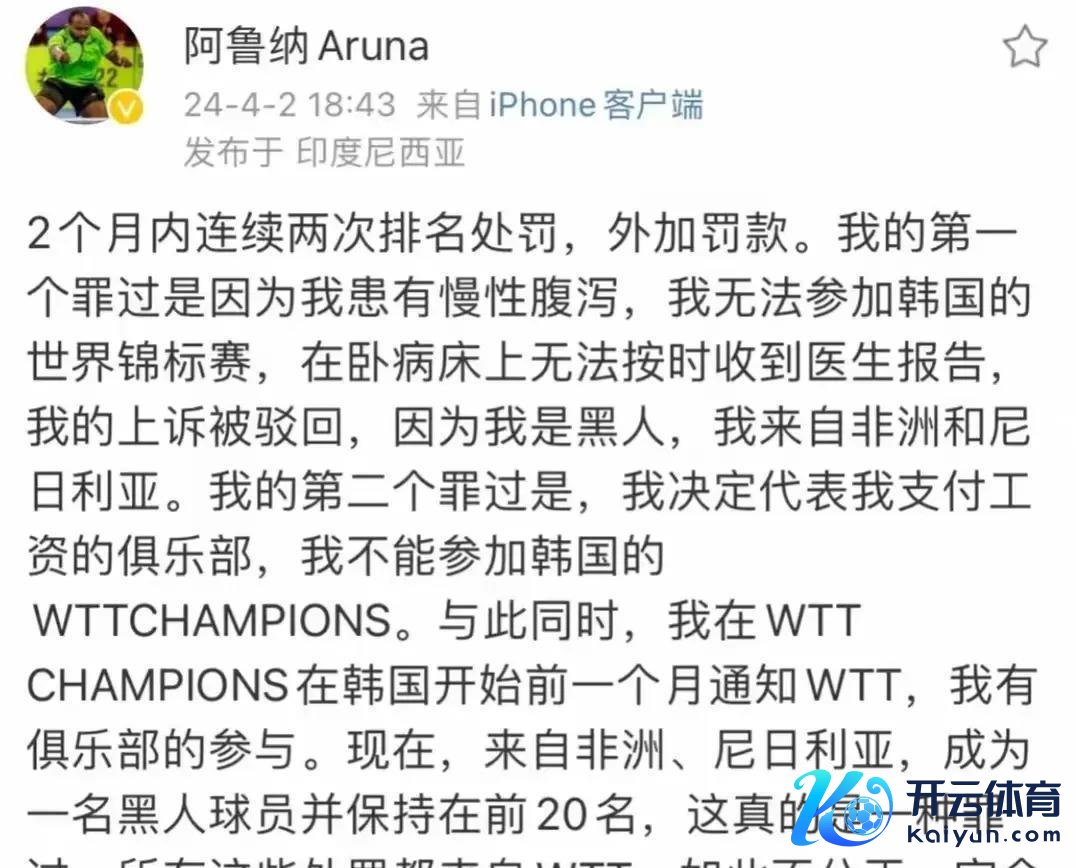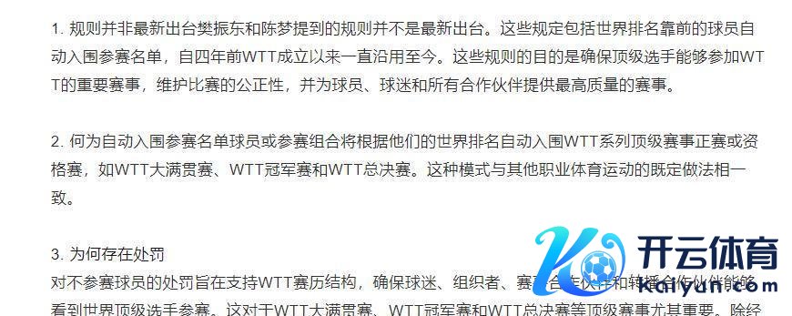 站在WTT的角度,他们当然是想通过严厉的法例确保赛事质料,幸免选手的“松弛退场”影响不雅众体验。