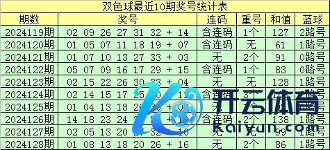 双色球第2024128期奖号为:01、08、13、18、20、26+16。红球012路比为1:2:3,奇偶比为2:4体育录像/图片,和值为86。 1.红球和值:本年和值分袂在41-148区间,大小比为65:63;最近100期分袂在41-148区间,大小比为51:49;本期肃穆出现小和值,肃穆91-101区间和值出现。 2.红球重号分析:本年重号出现90期,占比为70.3%;最近10期重号开出6期;最近100期重号开出72期;本期看好重号出现,参考重号0813。 3.红球连号分析:本年连号开出7