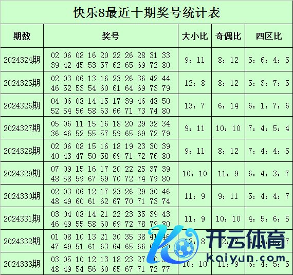 福彩舒畅8第2024333期开奖总结:0305101213182327303348495456606567717277,其中奖号四区比为6:4:5:5,奇偶比为11:9,大小比为10:10。 韩久舒畅8第2024334期奖号抽象分析 大小分析:最近5期大号线路活跃,开出了54枚,上期大小 号码均衡,分别开出了10枚,本期瞻望大号转热,看好开出13枚大号。 奇偶分析:最近5期号码奇偶比为53:47,奇数号码线路较热,上期奖号奇偶比为11:9,奇数号码走势相对活跃,本期看瞻仰数号码赓续走热,参考奇