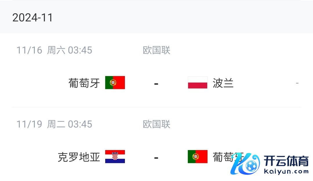 本次外洋比赛日,葡萄牙将对阵波兰和克罗地亚。