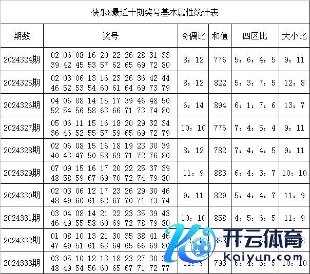 福彩甘愿8第2024333期开出奖号:03 05 10 12 13 18 23 27 30 33 48 49 54 56 60 65 67 71 72 77体育赛事直播,其中奖号奇偶比为11:9,和值为793,跨度74,四区比为6:4:5:5。